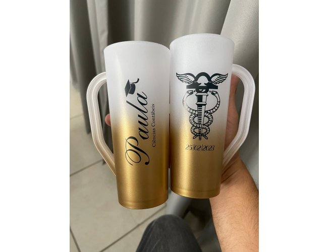 - A personalização é realizada de forma artesanal e é realizado um processo de transferência ou silk, com uma tinta especifica para acrílico, fazendo com que a arte fixe direto na peça. ( Processo utilizado irá depender da quantidade de peças e da arte escolhida).